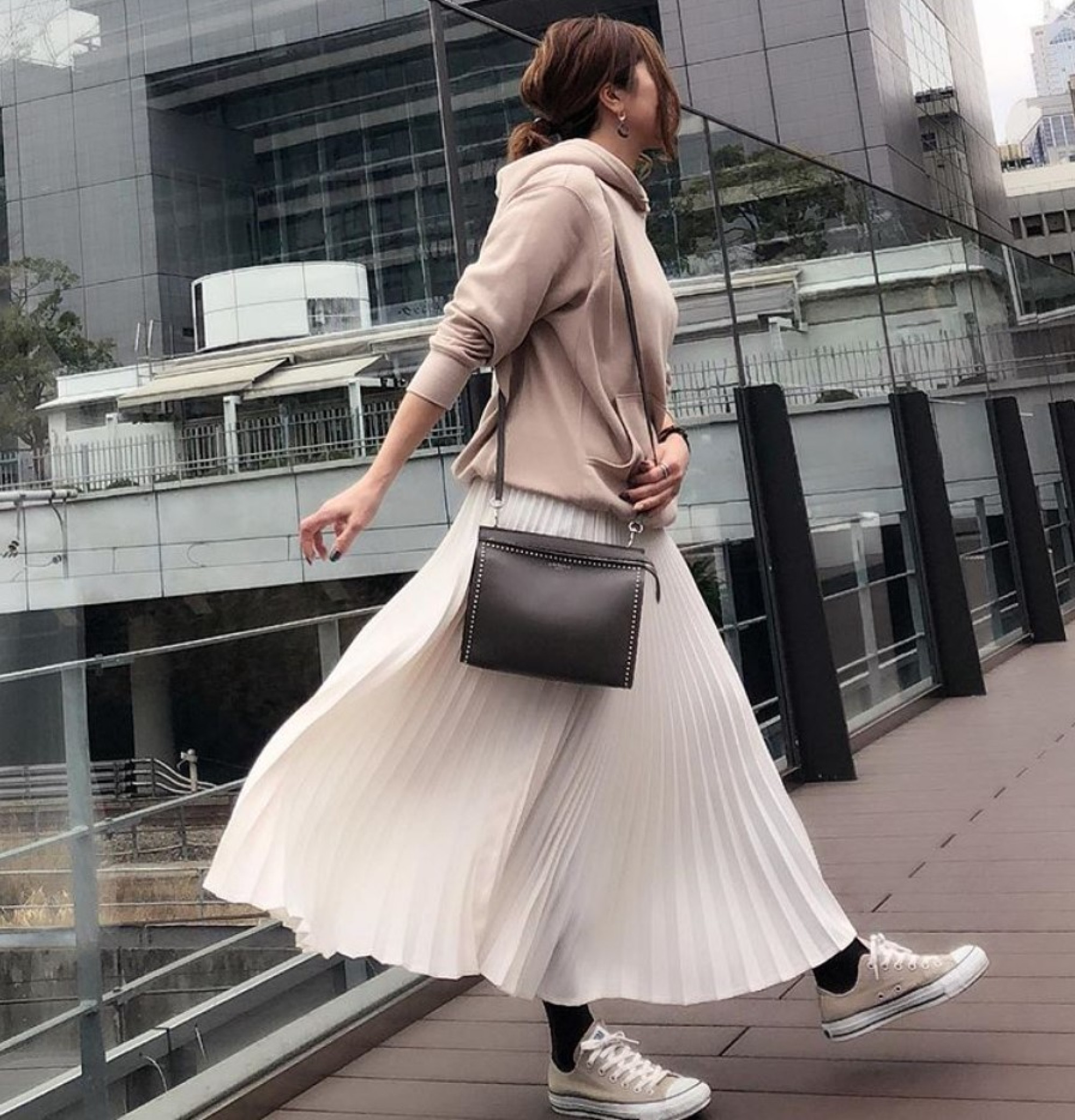 キメすぎない が断トツモテる Guロングスカート ゆるパーカでキレイめモノトーンコーデ ファッションスタイル ファッション 秋冬 ファッション
